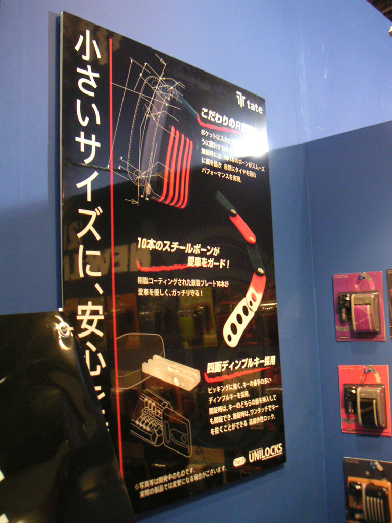 ・で、終日色々見て廻った中で最も興味をそそられたのは実は国内小さなメーカーが手がけた自転車用セーフティーロックだったという。樹脂でコーティングした金属プレートを互い違いにリベット留めした所謂「多関節」錠の小型版。既に自分も使用している既製品は自転車で持ち歩ける鍵としては最強レベルではあるものの、とにかく重さもサイズも相当なもので取り扱う際にも極めて慎重を要する(うっかりぶつけたら自転車のフレームそのものがヘコむ、割れる)っていうデメリットもあったりする代物。